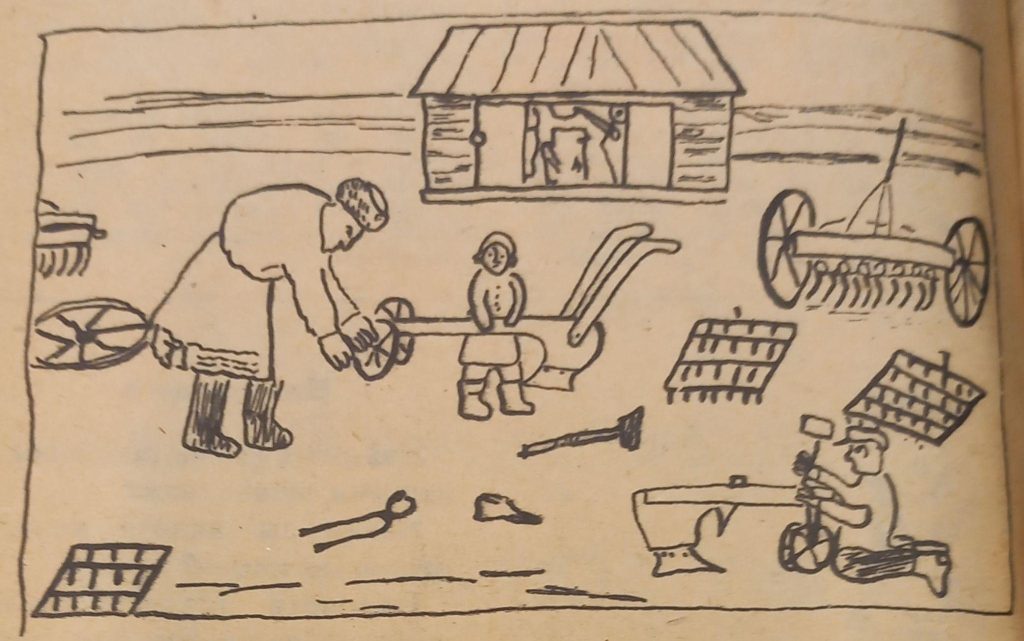 В дальнейшем, когда ДР постепенно отойдут от увлекательности и развлекательности в сторону занудноватой практической пользы, требования к рисункам поменяются. Начиная с 1930-х в почете такие сюжеты, как «Подготовка к севу», «Готовят семена к севу», «Колхозный сев» и т. д., со множеством сельскохозяйственных инструментов и реалистическим (насколько это возможно для ребенка) воспроизведением рабочего процесса. Рисунки «Подготовка к севу» и «Красный обоз», опубликованные в № 6 за 1932 год, сопровождает вопросительный комментарий на грани троллинга: