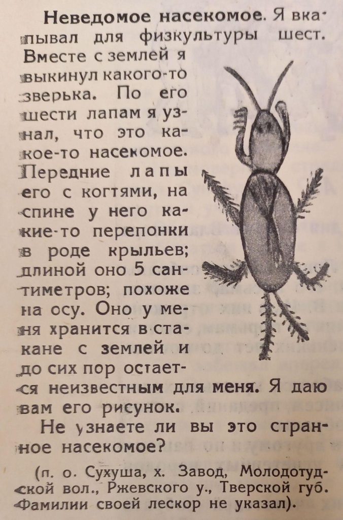 Но кулаки — всего лишь одна из возможных тем. Писать можно было буквально о чем угодно, хоть о найденном в земле необыкновенном насекомом (тогда, правда, тебя будут звать не деткором, а лескором), поясните, мол, кто такой: