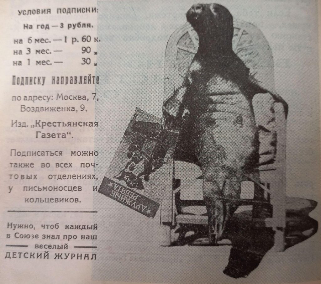 Самый первый номер ДР начался с Михаила Ивановича Калинина. Всесоюзный староста поздравил «деревенскую детвору» с их новым журналом и кратко обозначил основные задачи новорожденного издания: