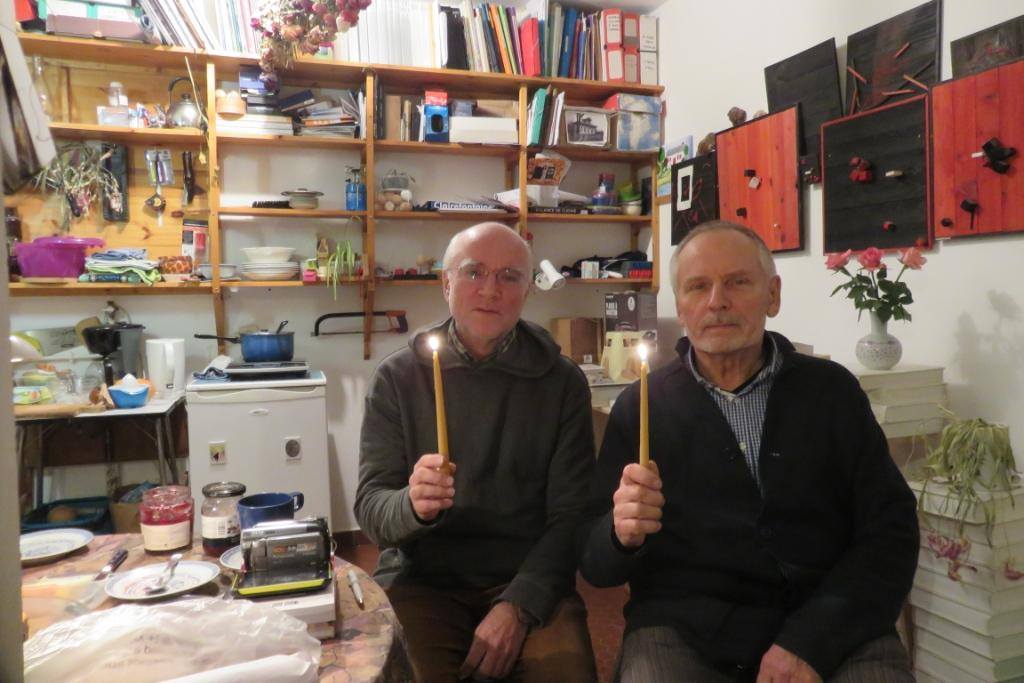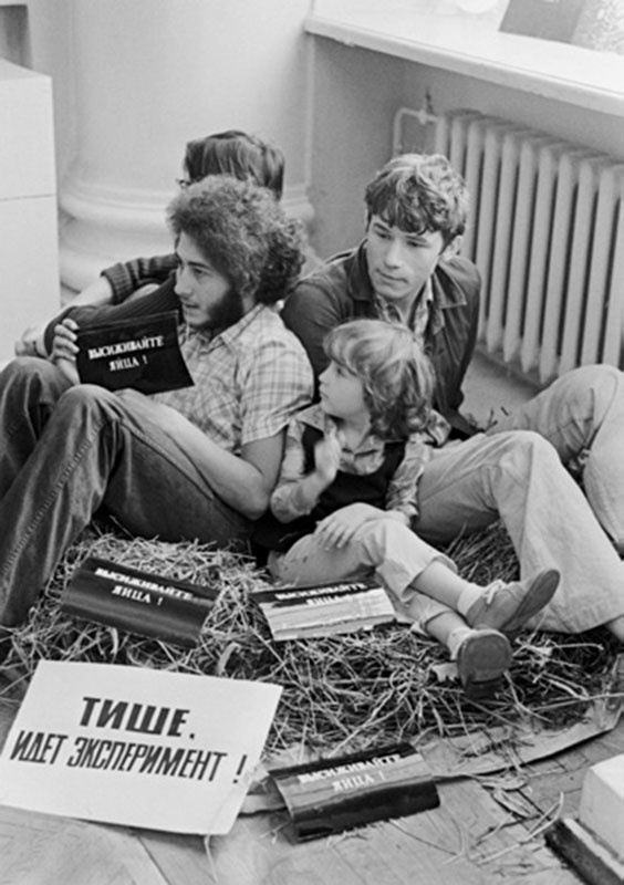 Дома у Миши висели фотографии их перформансов и барельефы Солженицына и Сахарова. Сахаров был сделан из сахара, Солженицын — из соли. Их изъяли у Миши Рошаля при обыске. Где они сейчас находятся, это просто уму непостижимо, где-то в архивах КГБ, если их не слизали, конечно.