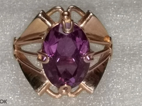 Посмотрите ниже на «редкое шикарное советское кольцо жук» с александритом и рисунком звезды серпа и молота внутри («вес 6.5 г, золото 583 проб.»):