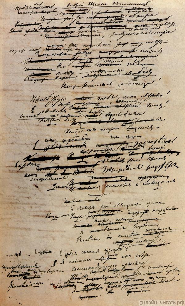 — У Пушкина был сборник Шенье, вышедший в августе 1819 г. О начале его увлечения поэтом можно с уверенностью судить только по текстам. Осенью 1819 г. в стихотворении «К Всеволожскому» появляется «пленница младая». Это самая ранняя отсылка к Шенье, к его оде «Молодая узница»: так названа возлюбленная Н. В. Всеволожского. В стихотворении «Дориде» (январь 1820 г.) заключительная строка «И ласковых имен младенческая нежность» является почти буквальным переводом строки одной из элегий Шенье: «Et des mots caressants la mollesse enfantine» («И ласковых слов детская мягкость»). Точным переводом из Шенье оказываются и строки из «Евгения Онегина»: «Порой белянки черноокой // Младой и свежий поцелуй».