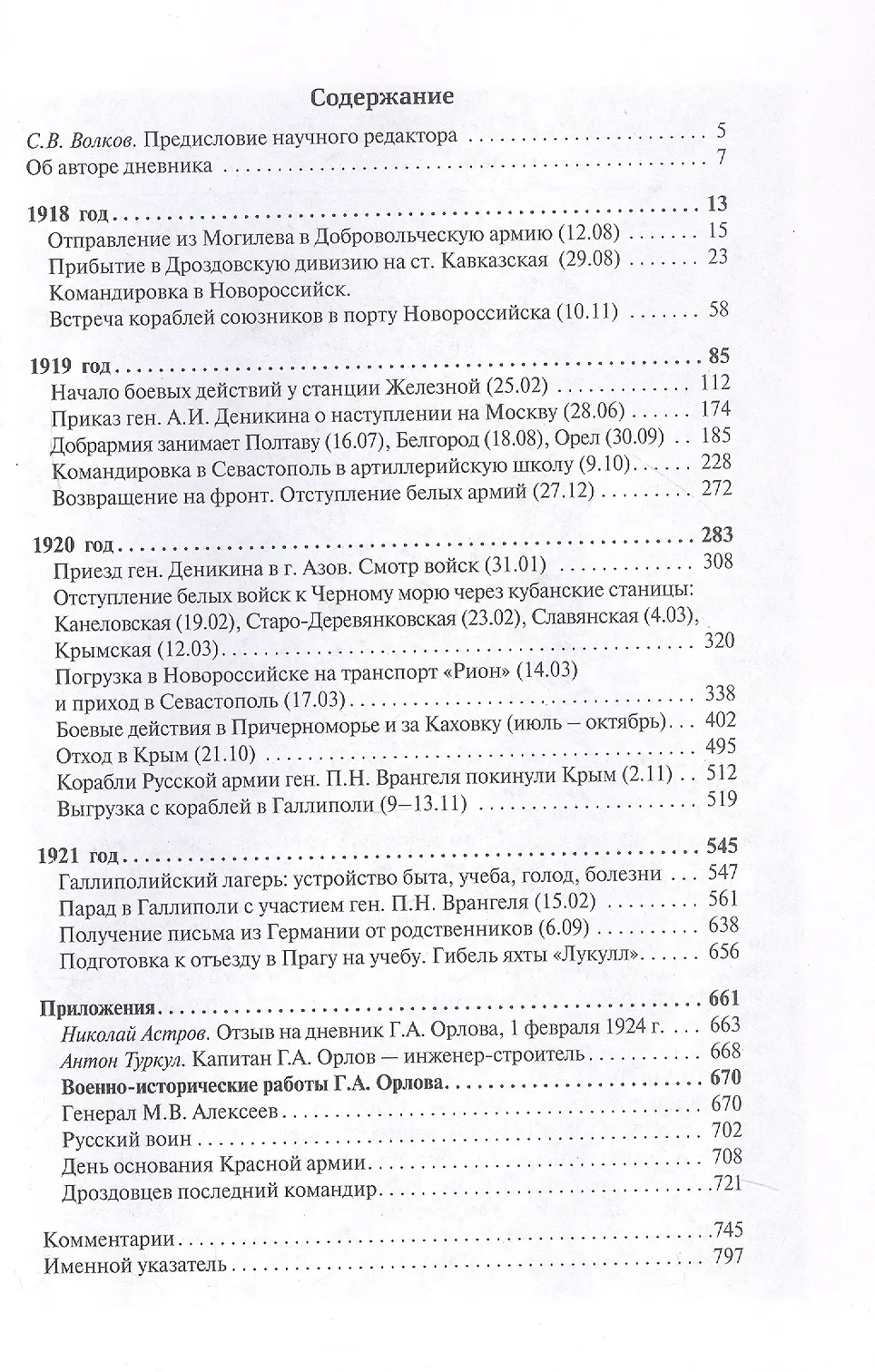 Георгий Орлов. Дневник добровольца. Хроника Гражданской войны 1918–1921 гг. М.: Посев, 2019. Содержание