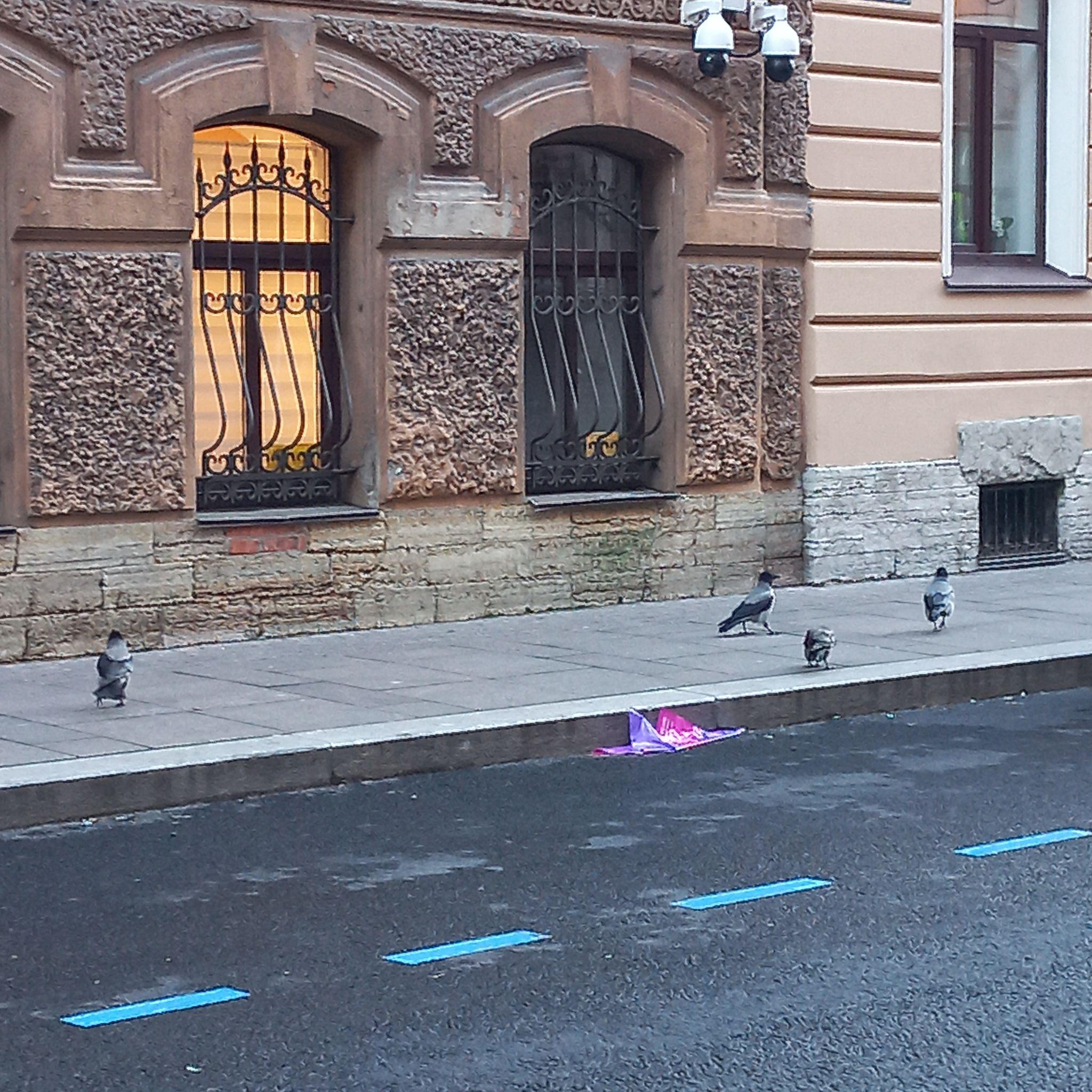 Пришлось гулять по Косому в тишине. Сперва он казался довольно обыкновенным, но постепенно сквозь привычный ряд классической питерской архитектуры стали проглядывать чудесатые штуки. Вот, например, висит афиша, приглашающая на концерт Андрея Державина. На фото исполнитель песен «Катя-Катерина» и «Чужая свадьба» с густыми черными волосами. Хотя я, например, уже и не помню его без блестящей брутальной лысины. Чудо?