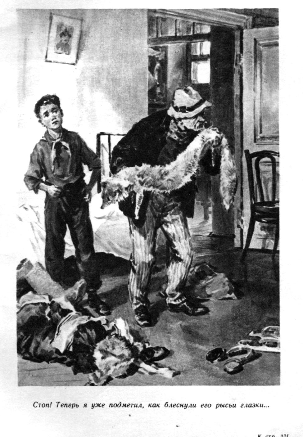 Вполне закономерно, что, после того как отца в повести отдают под суд и приговаривают «к пяти годам, за растрату» (Гайдар 1972: 301), вышедшая вторично замуж Валентина уезжает с мужем на Кавказ, а пасынка оставляет стеречь московскую квартиру. Тут и случается в его жизни настоящее нашествие злодеев, причем все они выдают себя не просто за стопроцентно советских людей, а за героических советских людей. То есть продолжается возведение вокруг Сергея извращенного подобия советского идеального мира, начатое Валентиной из-за попущения отца мальчика.