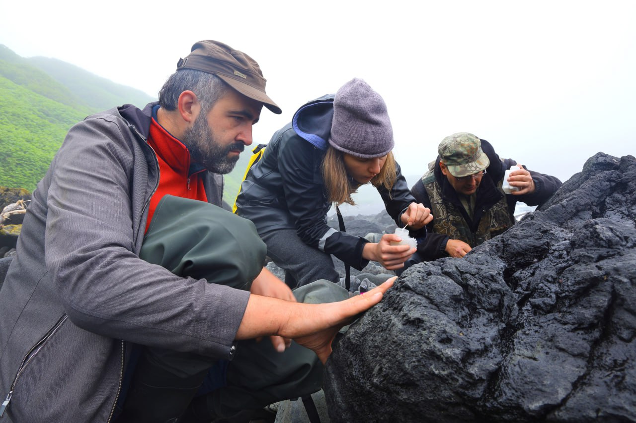 — Курильская эпопея, которая у нас длится с 2019 года, заслуживает отдельных долгих разговоров. К счастью, она еще продолжается, и я очень надеюсь, что-либо я, либо коллеги когда-нибудь красиво обо всем этом напишут. Что касается Онекотана — там все было стандартно для подобных экспедиций: полет через всю страну до Петропавловска-Камчатского, оттуда посадка на корабль. Корабль идет примерно сутки и приходит в нужную бухту — в данном случае это была бухта Муссель. После высадки на остров в первую очередь разбивается лагерь и проводится рекогносцировка — что мы имеем на руках? какие возможны маршруты? В нашей комплексной экспедиции одновременно находилось порядка шестидесяти человек — возможно, остров никогда не был так густо заселен.