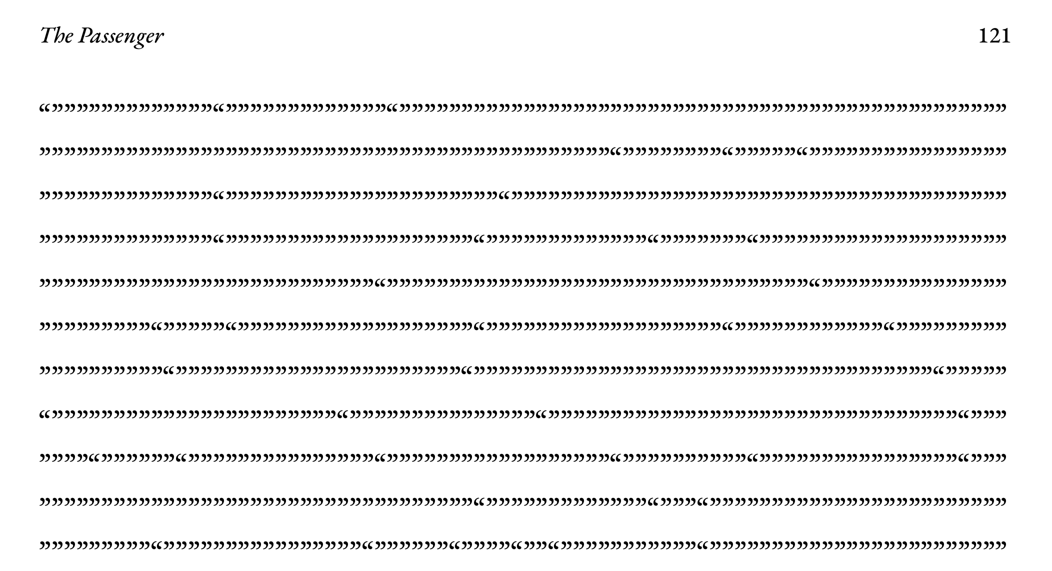 Маккарти наверняка ответил бы на такой вопрос в том же духе. Впрочем, в экспериментах с пунктуацией он пошел еще дальше Фолкнера. Когда специалист по социальной нейронауке Адам Кэлхун изобразил отрывки из двух своих любимых произведений, «Кровавого меридиана» Маккарти и «Авессалом, Авессалом!» Фолкнера, убрав все слова и оставив лишь пунктуацию, различие вышло разительным: у Фолкнера — россыпь скобок, запятых, кавычек и вопросительных знаков, а у Маккарти — скупая вереница точек, изредка перемежающихся запятыми и вопросами.