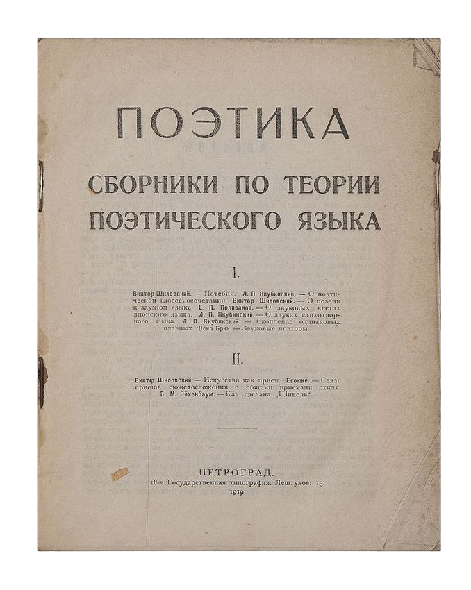 Сегодня мне хотелось бы сосредоточиться не на биографических, а на теоретических основаниях Эйхенбаума и его коллег по ОПОЯЗу — Шкловского и Тынянова. Потому что Эйхенбаума и других исследователей мы ценим не за то, что они были «прикольными людьми», про которых можно рассказать интересные истории, слухи и сплетни — о том, как человек по имени Борис Эйхенбаум сначала дружил, а потом ссорился с двумя «милыми Витями»: Шкловским и Жирмунским. Все-таки мы помним эти имена прежде всего потому, что они были чрезвычайно значимыми теоретиками. Настолько значимыми, что различные версии теории формального метода и сегодня к ним регулярно обращаются — и не только в российской, и даже не столько в российской, сколько в мировой науке. И те биографические перипетии, о которых обычно любят рассказывать, были обусловлены не просто сходством или несходством характеров — хотя это, конечно, тоже может быть любопытно. Гораздо важнее то, что схождения и расхождения Эйхенбаума со Шкловским и другими теоретиками были во многом обусловлены именно их теоретическими позициями — их отношением и к формальному методу, и к филологии как науке вообще.